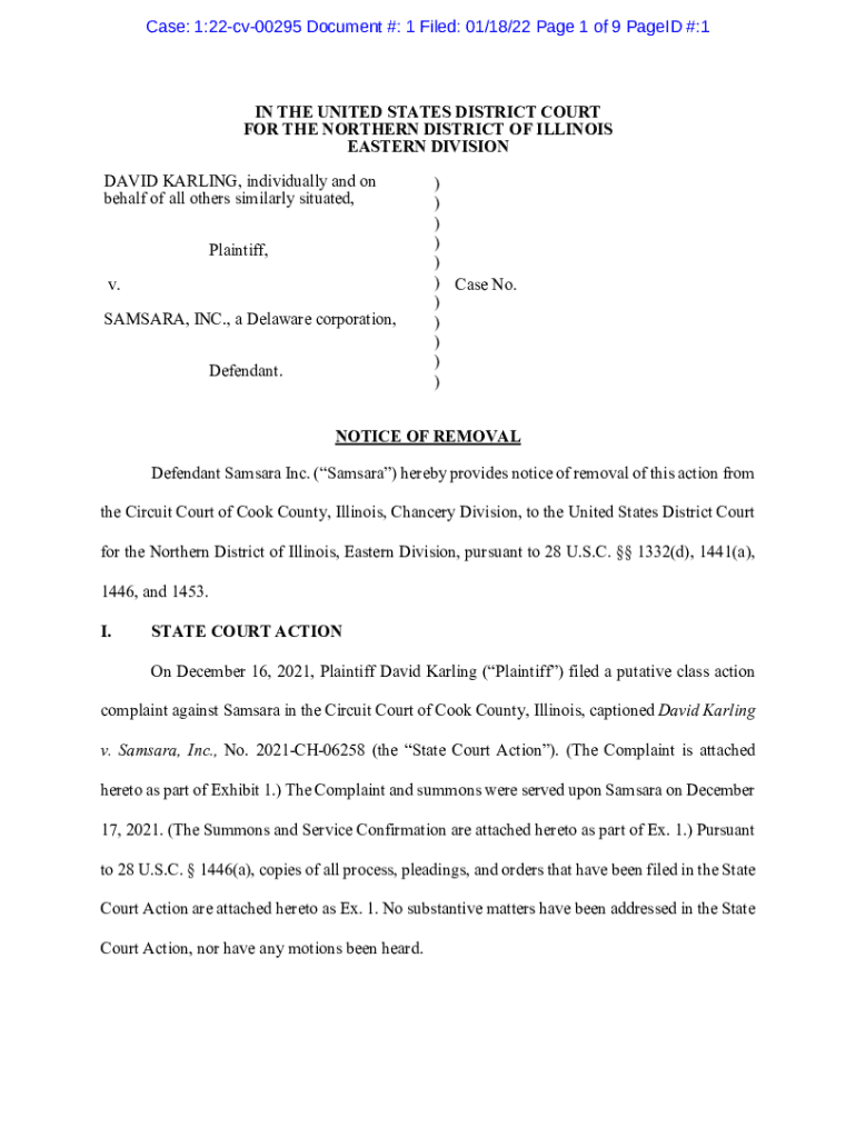 Get the free Karling v. Samsara, Inc. - 1:22-cv-00295 - ClassAction.org