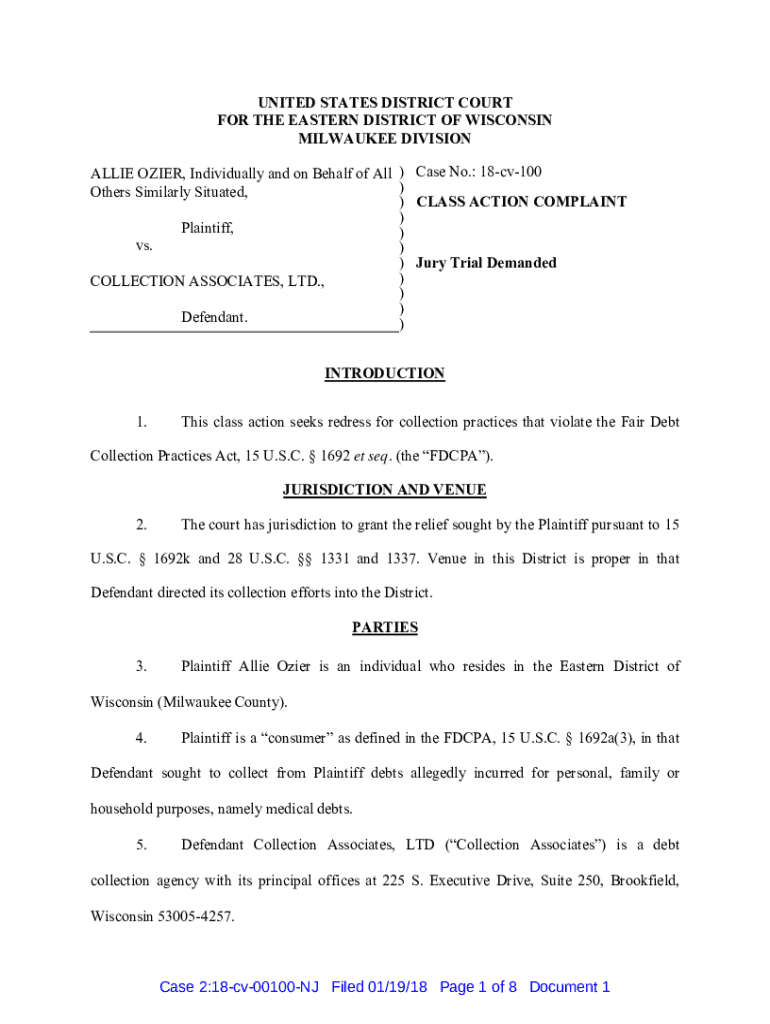 Get the free Ozier v. Collection Associates Ltd - ClassAction.org
