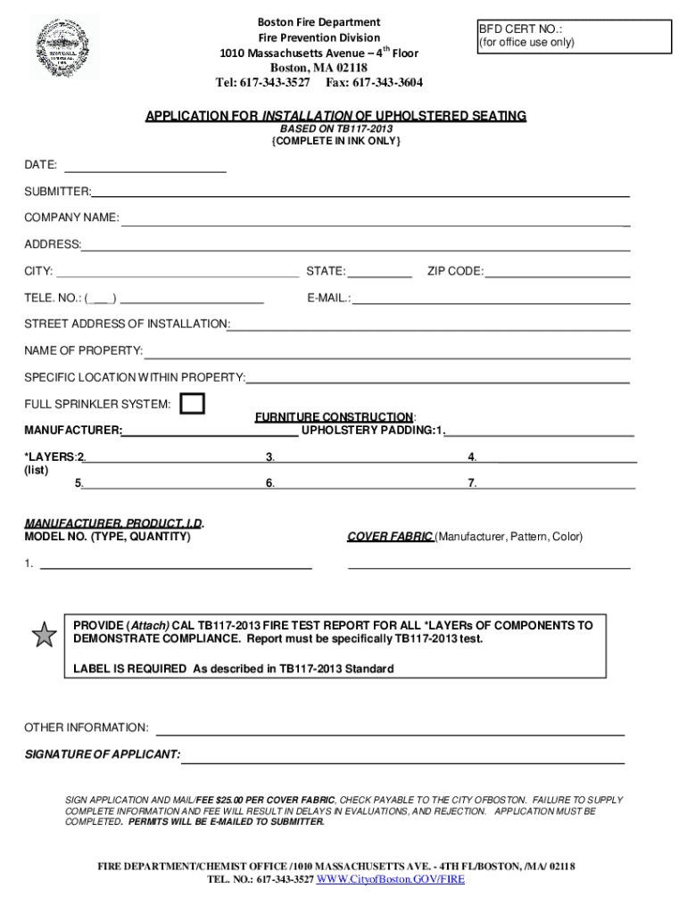 Get the free application for installation of upholstered seating - Boston.gov