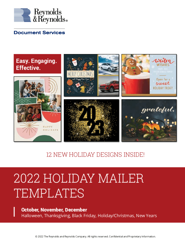 Easy. Engaging. Effective.12 NEW HOLIDAY DESIGNS INSIDE!2022 HOLIDAY MAILER TEMPLATES October, November, December Halloween, Thanksgiving, Black Friday, Holiday/Christmas, New Years 2022 The Reynolds