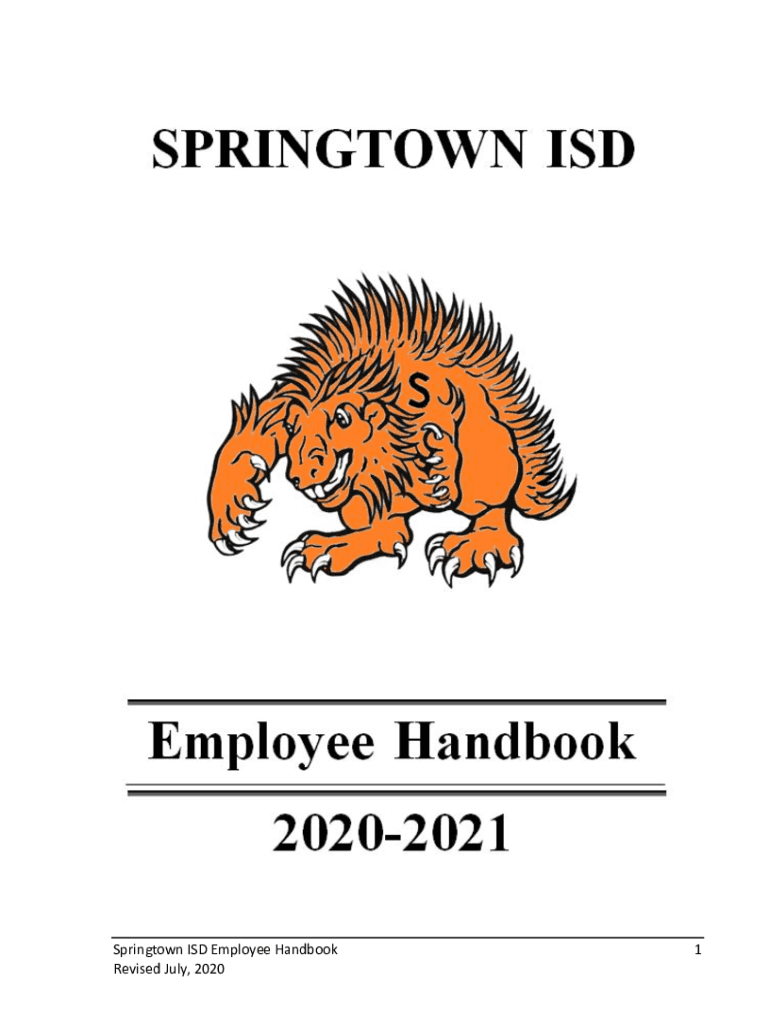 Spring town ISD Employee Handbook Revised July, 20201Table of Contents Employee Handbook Receipt ................................................................................................. 5