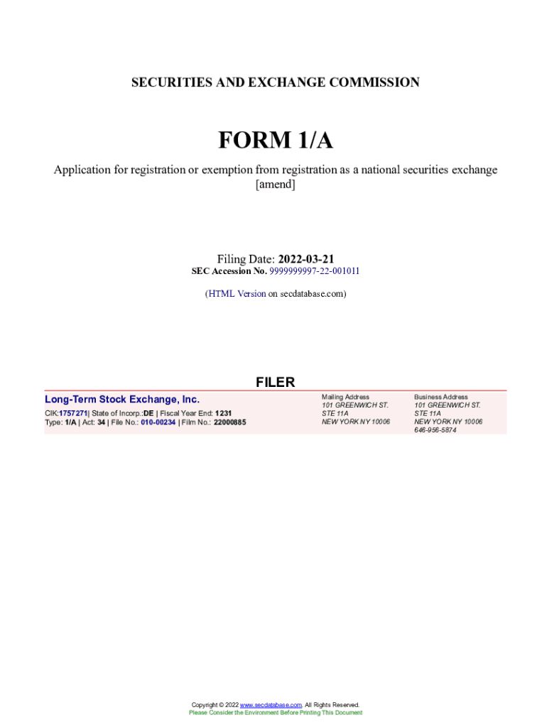 Get the free Form 1 - Application For Registration as a National Securities Exchange
