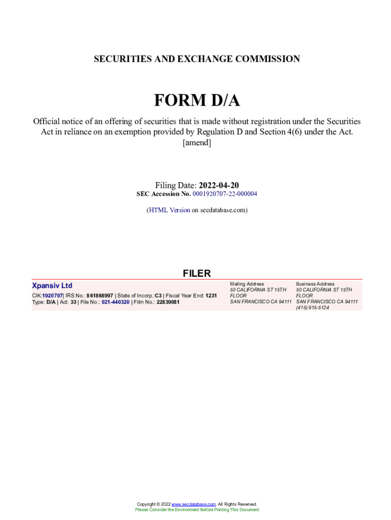 Get the free Xpansiv Ltd Form D/A Filed 2022-04-20. Accession Number