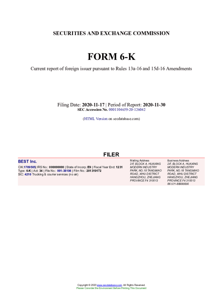 Get the free BEST Inc. Form 6-K Current Event Report Filed 2020-11-17