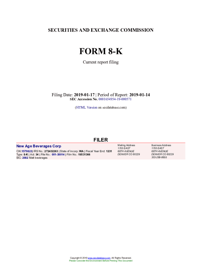 Get the free New Age Beverages Corp Form 8-K Current ... - SECDatabase