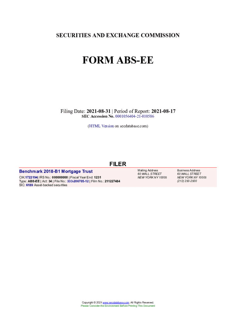Get the free Benchmark 2018-B1 Mortgage Trust Form ABS-EE Filed 2021-08-31. Accession Number