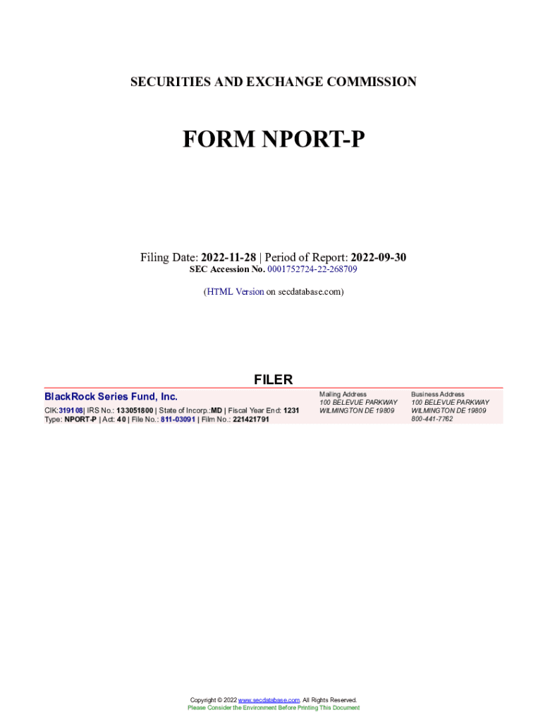 Get the free BlackRock Series Fund, Inc. Form NPORT-P Filed 2022-11-28. Accession Number