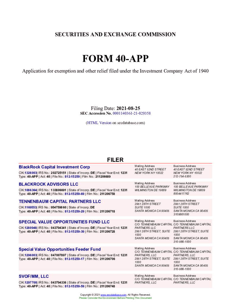 Get the free BlackRock Capital Investment Corp Form 40-APP Filed 2021-08-25. Accession Number
