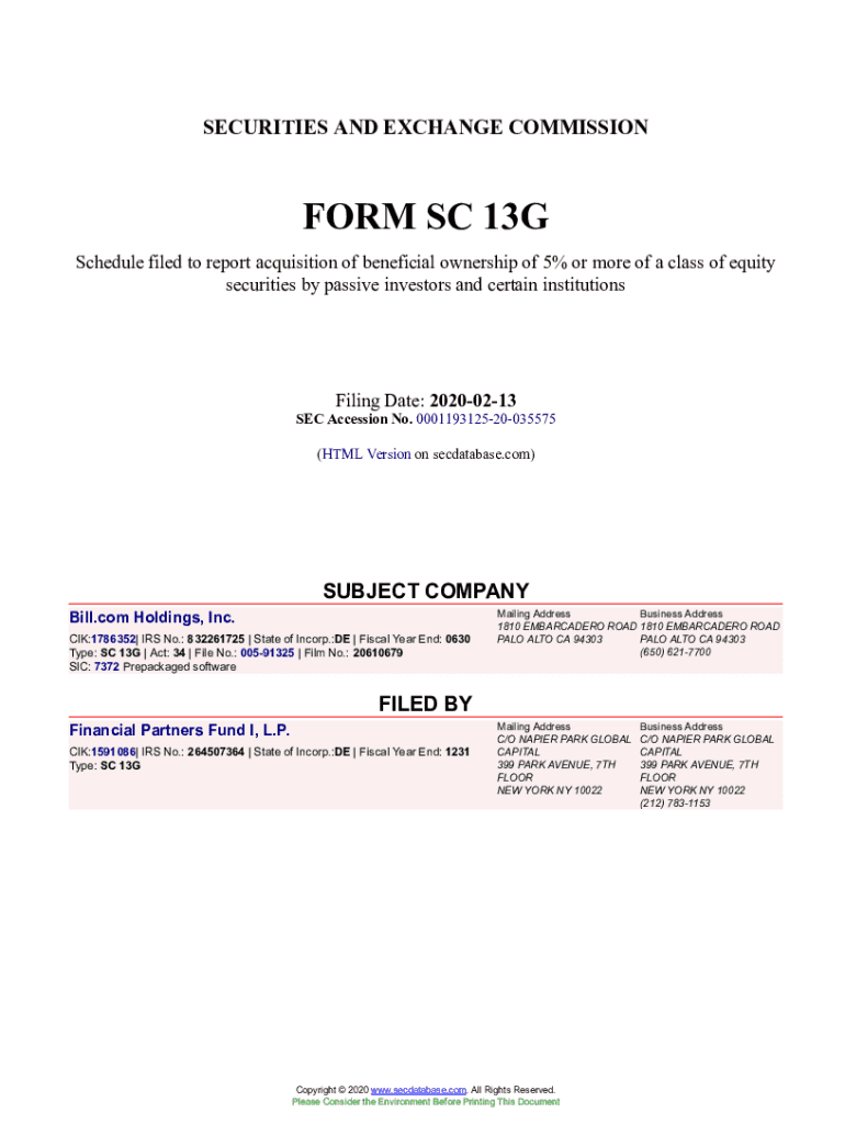 Get the free Bill.com Holdings, Inc. Form SC 13G Filed 2020-02-13. Accession Number