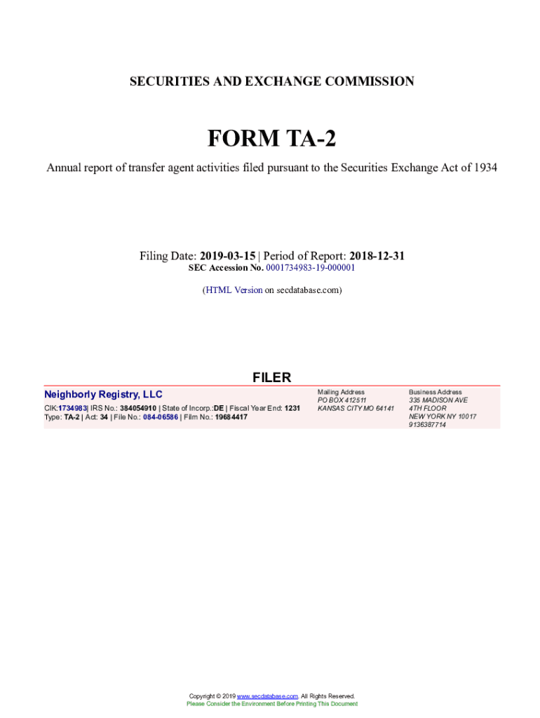 Get the free Neighborly Registry, LLC Form TA-2 Filed 2019-03-15. Accession Number