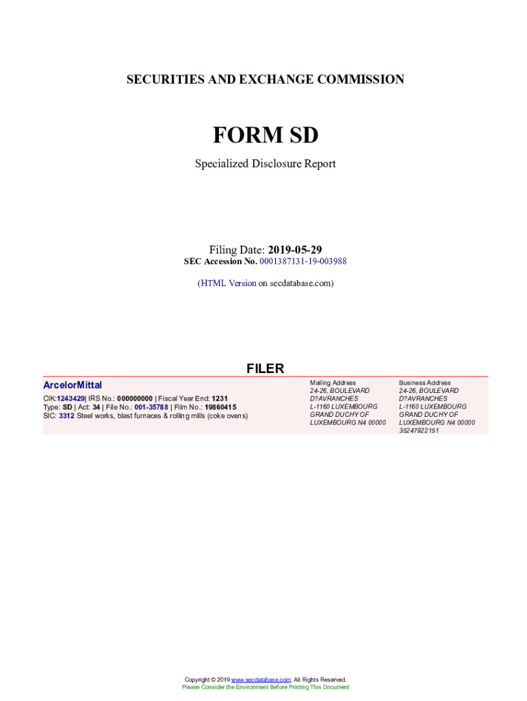 Get the free ArcelorMittal Form SD Filed 2019-05-29. Accession Number