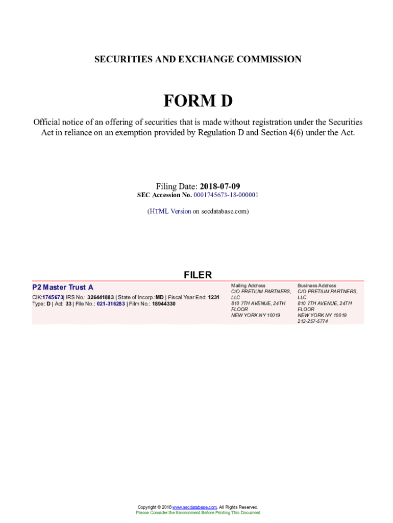 Get the free P2 Master Trust A Form D Filed 2018-07-09. Accession Number