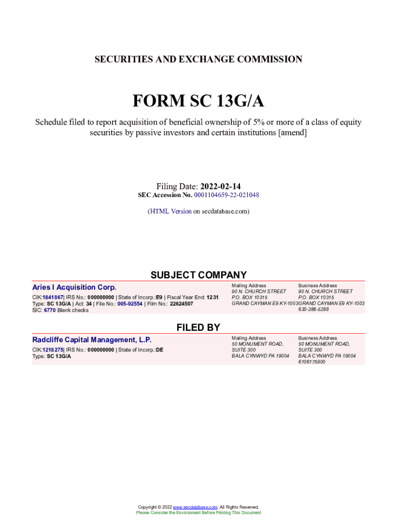 Get the free Aries I Acquisition Corp. Form SC 13G/A Filed 2022-02-14
