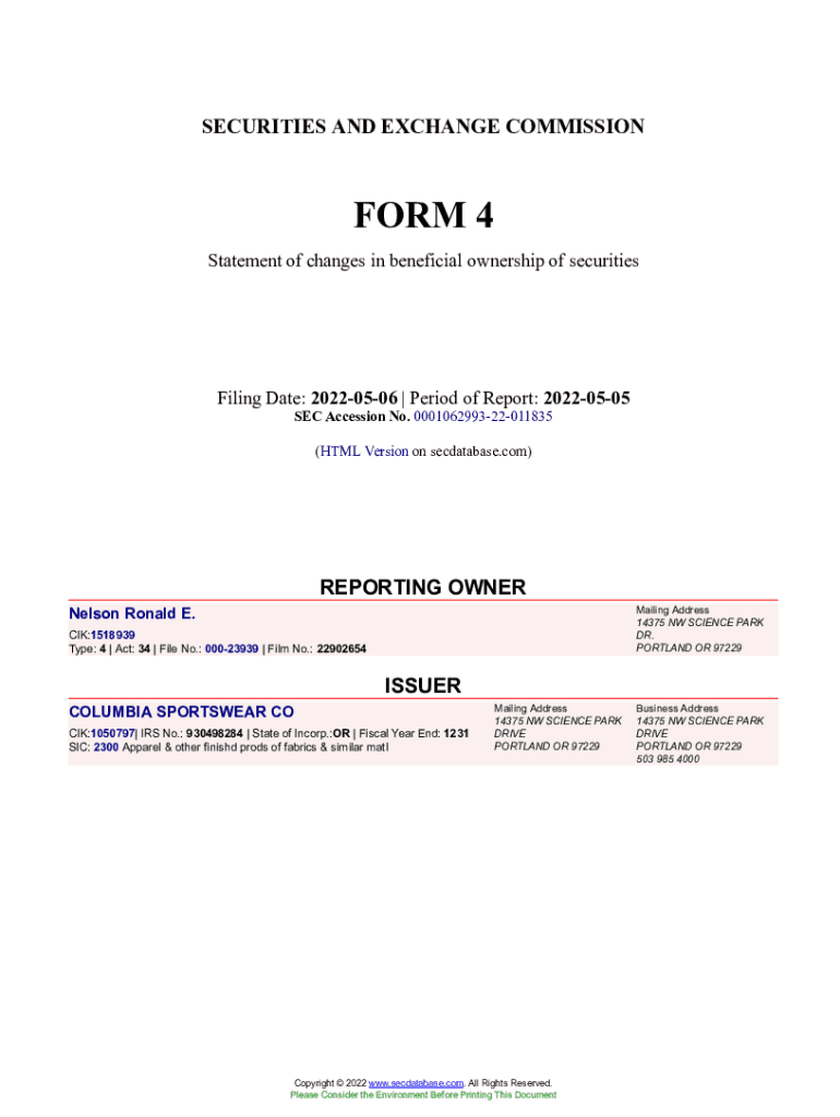 Get the free Nelson Ronald E. Form 4 Filed 2022-05-06. Accession Number