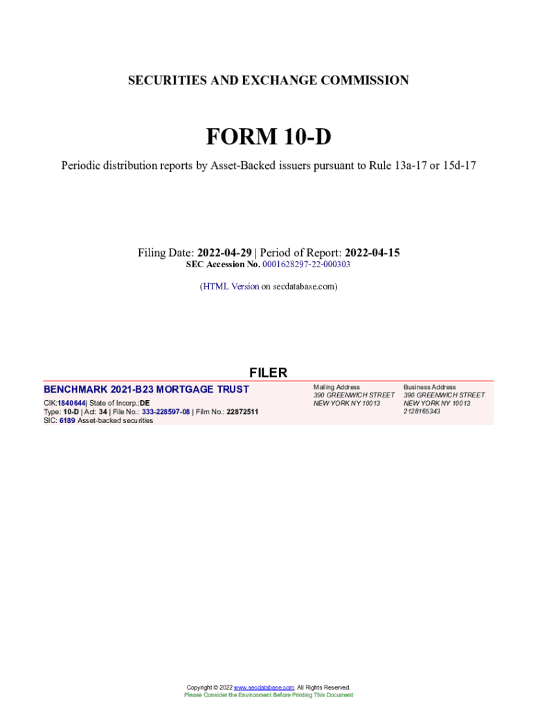 Get the free BENCHMARK 2021-B23 MORTGAGE TRUST Form 10-D Filed 2022-04-29. Accession Number