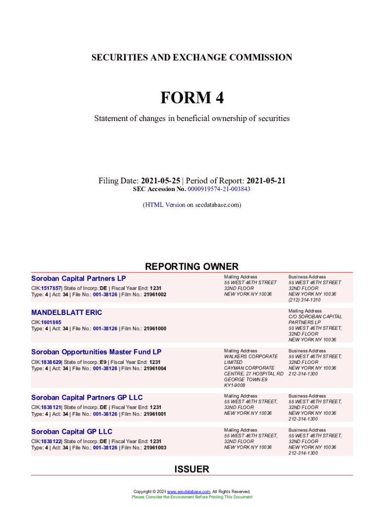 Get the free Soroban Capital Partners LP Form 4 Filed 2021-05-25. Accession Number