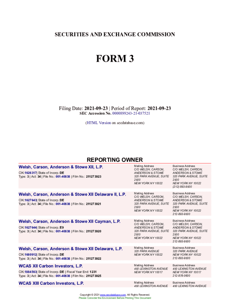 Get the free Welsh, Carson, Anderson & Stowe XII, L.P. Form 3 Filed 2021 ...
