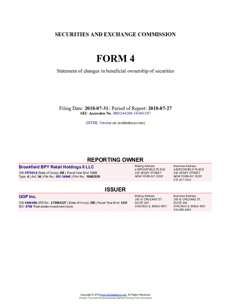 Get the free Brookfield BPY Retail Holdings II LLC Form 4 Filed 2018-07-31. Accession Number