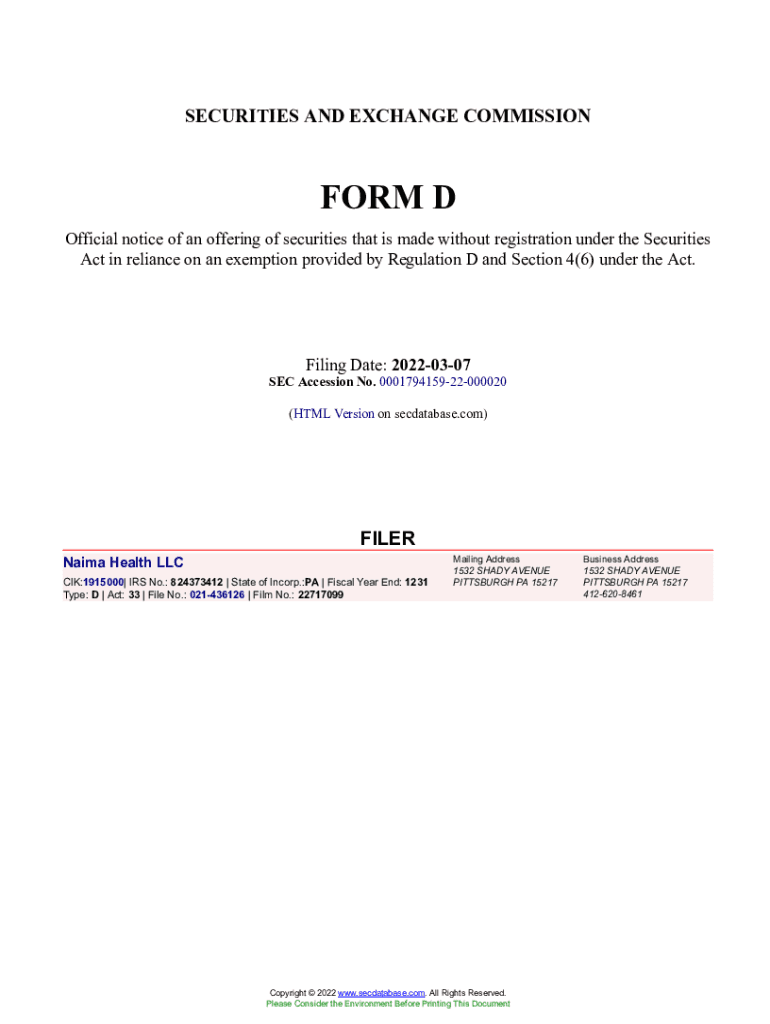Get the free Naima Health LLC Form D Filed 2022-03-07. Accession Number