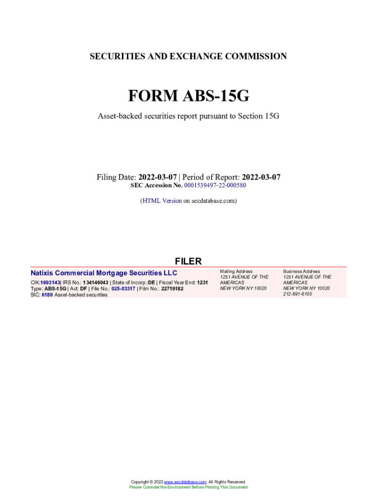 Get the free Natixis Commercial Mortgage Securities LLC Form ABS-15G Filed 2022-03-07. Accession ...