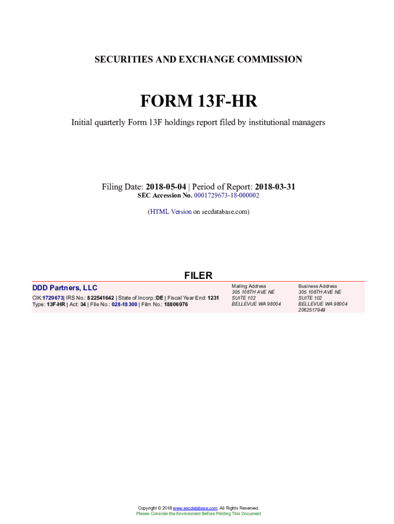 Get the free DDD Partners, LLC Form 13F-HR Filed 2018-05-04. Accession Number