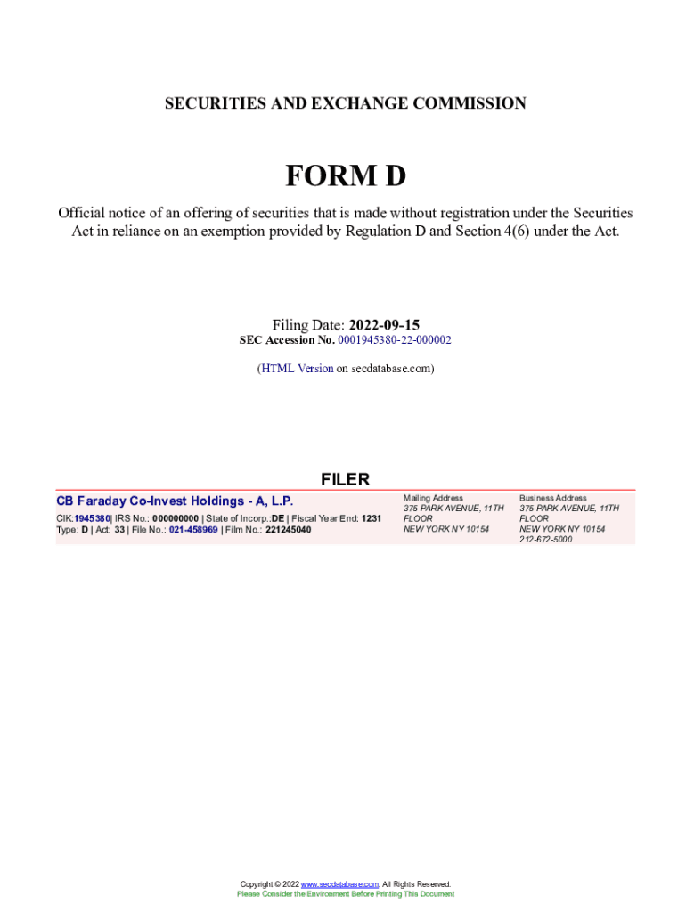 Get the free CB Faraday Co-Invest Holdings - A, L.P. Form D Filed 2022 ...