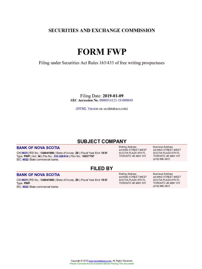Get the free BANK OF NOVA SCOTIA Form FWP Filed 2019-01-09. Accession Number