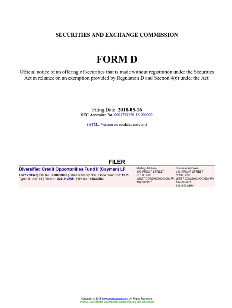 Get the free Diversified Credit Opportunities Fund II (Cayman) LP Form D ...