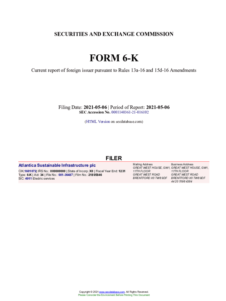 Get the free Atlantica Sustainable Infrastructure plc Form 6-K Current ...