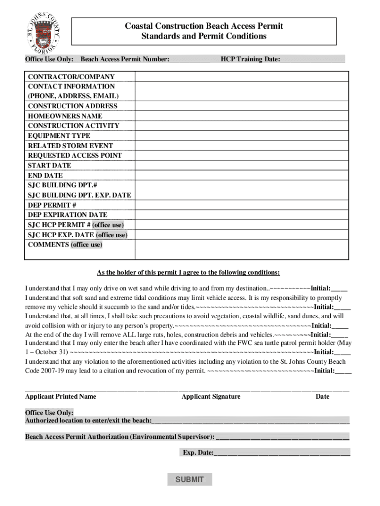 Get the free Beach Use PermitsCoastal Construction - St. Johns County, Florida