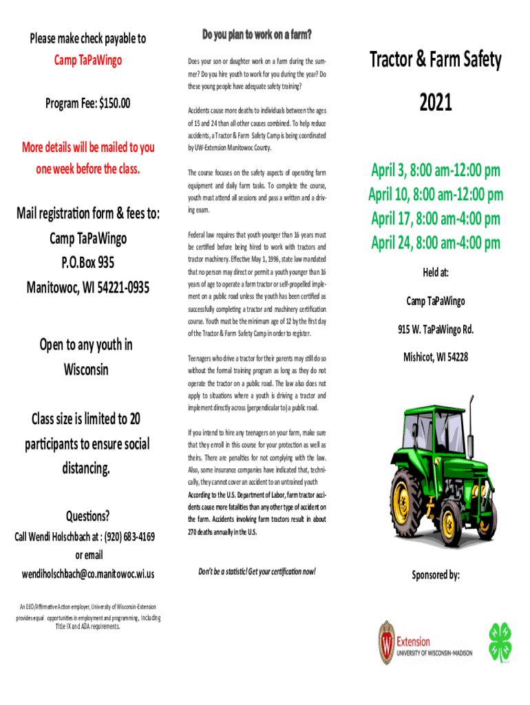 Please make check payable to Camp Taping Program Fee: $150.00 More details will be mailed to you one week before the class. Mail registration form & fees to: Camp Taping P.O. Box 935 Manitowoc, WI