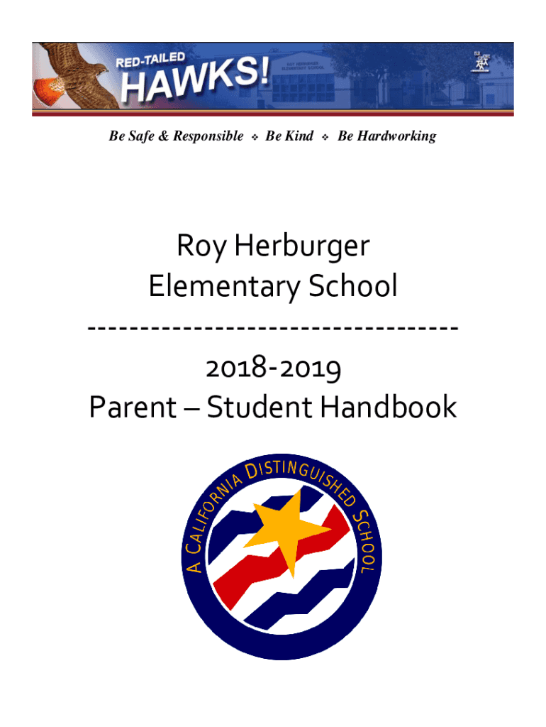 Be Safe & Responsible Be Kindle Hardworking Roy Her burger Elementary School 20182019 Parent Student Handbook Roy Her burger Elementary School Mission & Vision Statement Mission Statement The mission