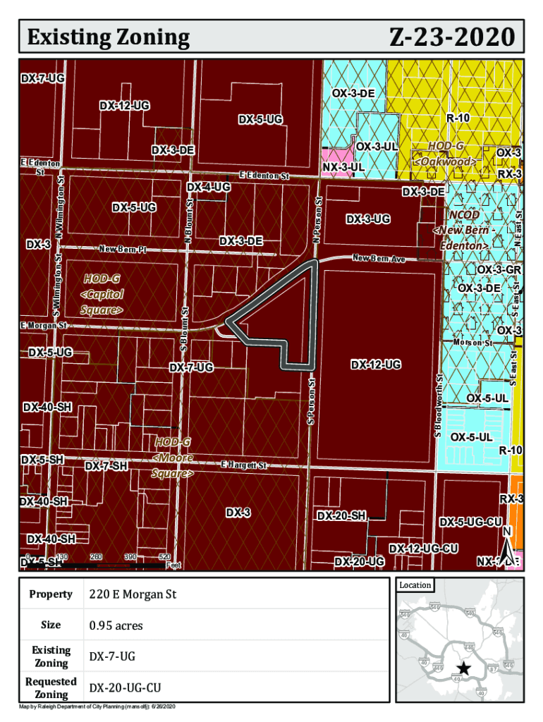 Z232020Existing Zoning DX7UGOX3DEDX12UGS East STS Blunt Strong Capitol SquareDX3DEDX5UGS Person StDX7UGDX40SHDX5SHDX7SHHODG Moore SquareDX40SH130DX3DX5SHProperty Size Existing ZoningRequested Zoning260390520
