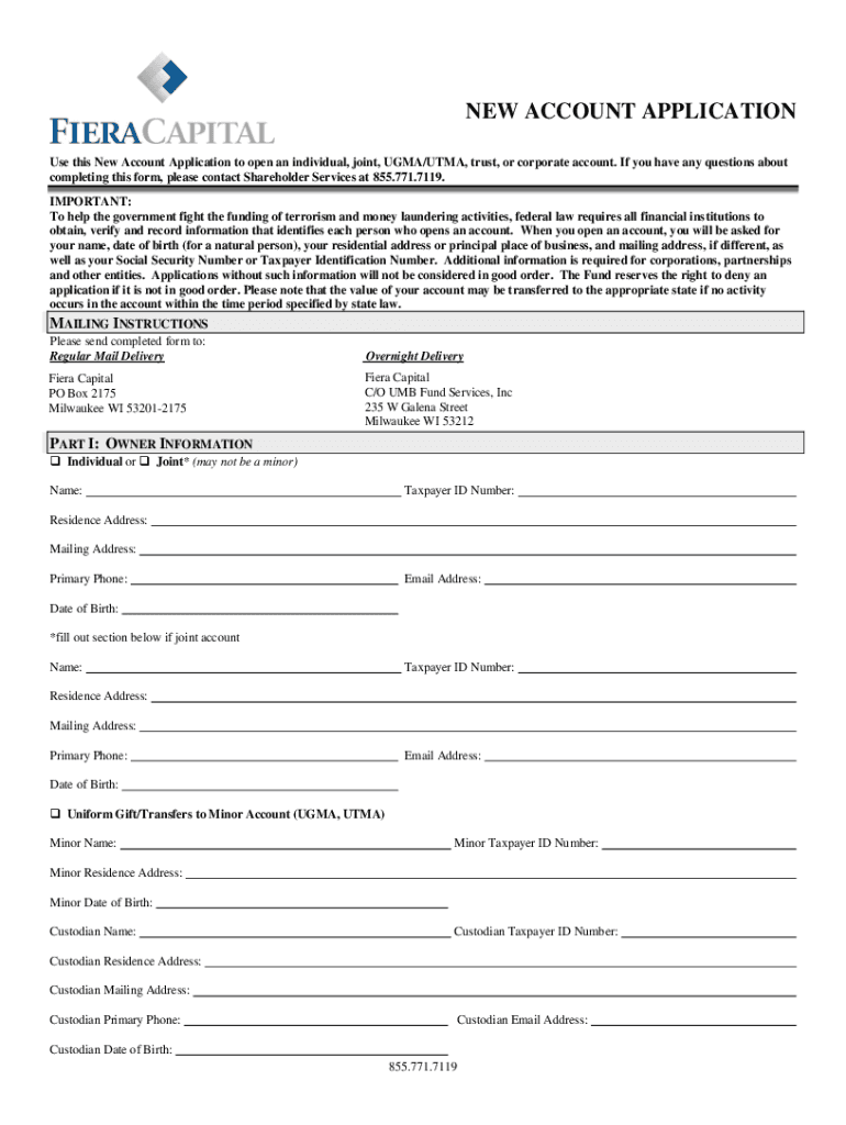 NEW ACCOUNT APPLICATION Use this New Account Application to open an individual, joint, UGA/TMA, trust, or corporate account. If you have any questions about completing this form, please contact Shareholder