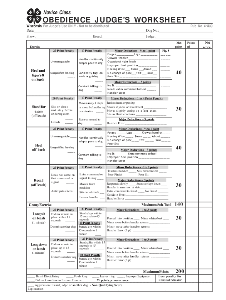 Get the free 4h.extension.wisc.edufiles2021Novice Class OBEDIENCE JUDGES WORKSHEET - Wisconsin 4-H