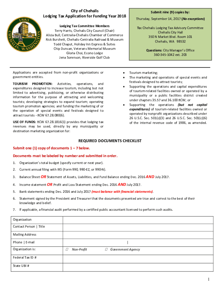 Get the free Lodging Tax Advisory CommitteeCity of ... - Chehalis, Washington
