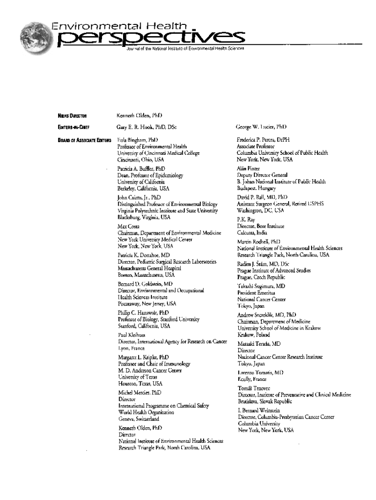 Environmental HealthtrsprctNcLs of the National Institute of Environmental Health Sciences Journalists DIRECTOR Kenneth Olden, PhDEDITORSINCHIEFGary E. R. Hook, PhD, Dashboard OF Associate EDITORS