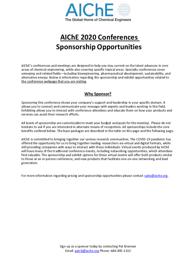 Niche 2020 Conferences Sponsorship Opportunities Arches conferences and meetings are designed to help you stay current on the latest advances in core areas of chemical engineering, while also covering