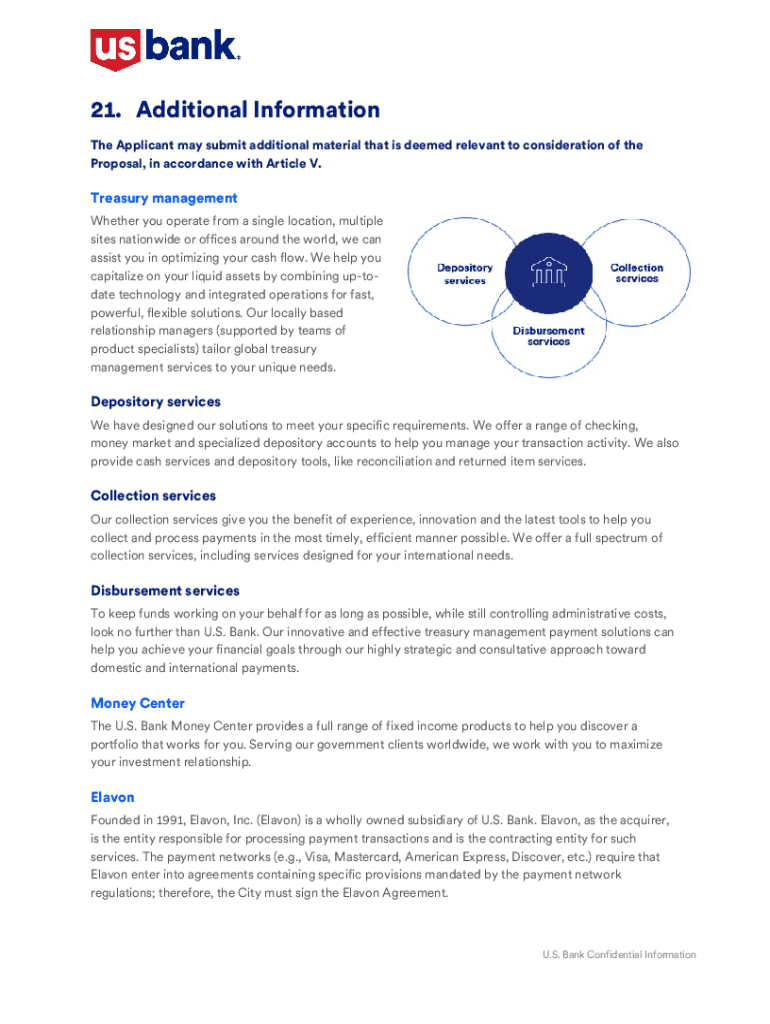 21. Additional Information The Applicant may submit additional material that is deemed relevant to consideration of the Proposal, in accordance with Article V. Treasury management Whether you operate