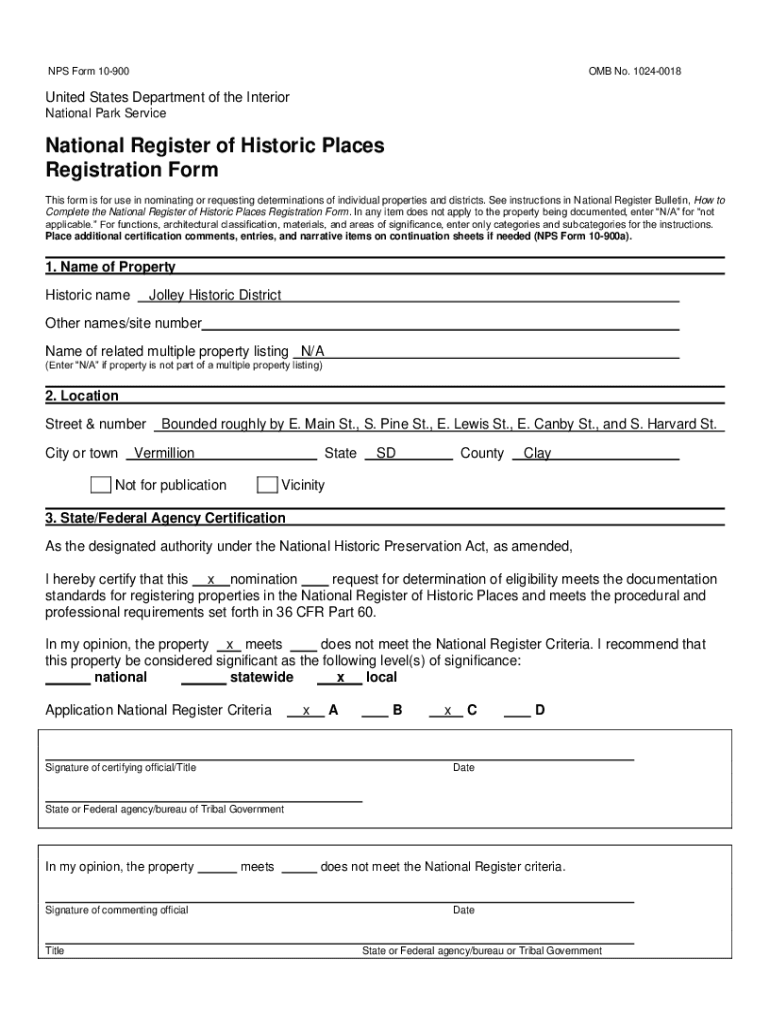 NPS Form 10900OMB No. 10240018United States Department of the Interior National Park ServiceNational Register of Historic Places Registration Form This form is for use in nominating or requesting