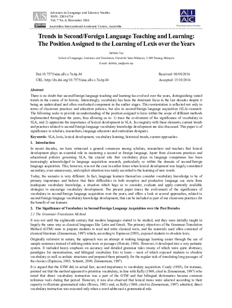 Get the free Trends in Second/Foreign Language Teaching and Learning: The ...