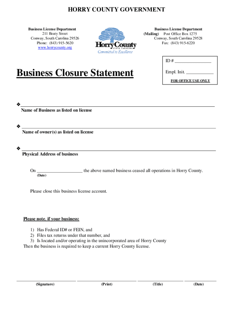 Get the free Business Closure Statement