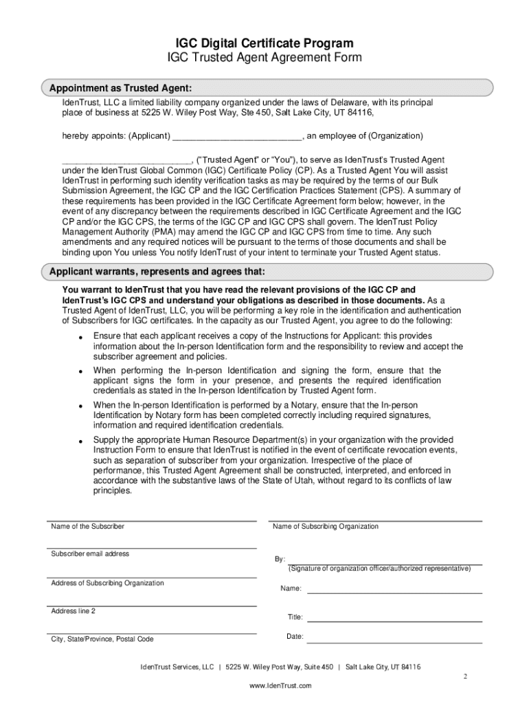 Entrust Global Common (IGC) Trusted Agent Agreement Copyright 2021 Entrust Services, LLC. All rights reserved. Entrust Services, LLC | 5225 W. Wiley Post Way, Suite 450 | Salt Lake City, UT 84116