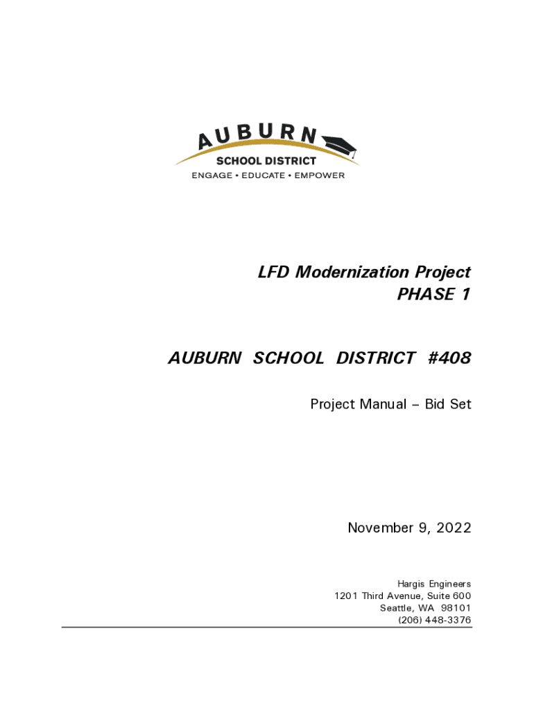 LED Modernization Project PHASE 1 AUBURN SCHOOL DISTRICT #408 Project Manual Bid Set November 9, 2022Hargis Engineers 1201 Third Avenue, Suite 600 Seattle, WA 98101 (206) 4483376LFD Modernization
