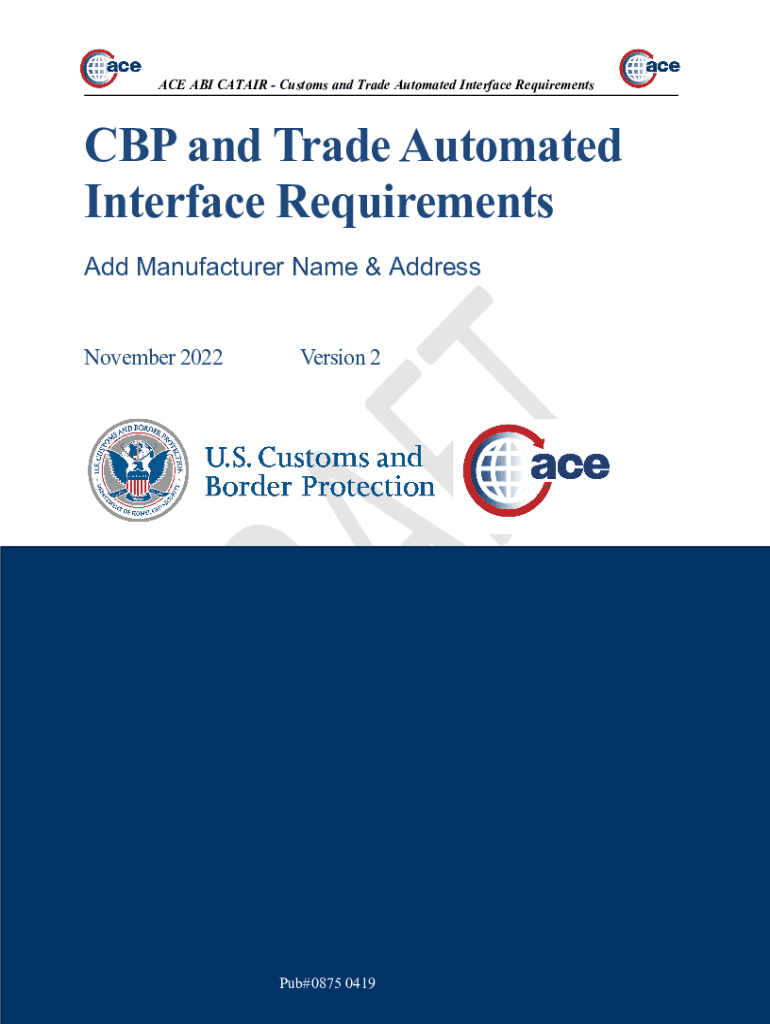 ACE ABI CAPTAIN Customs and Trade Automated Interface Requirements CBP and Trade Automated Interface Requirements Add Manufacturer Name & Address November 2022November 2022Version 2Add Manufacturer