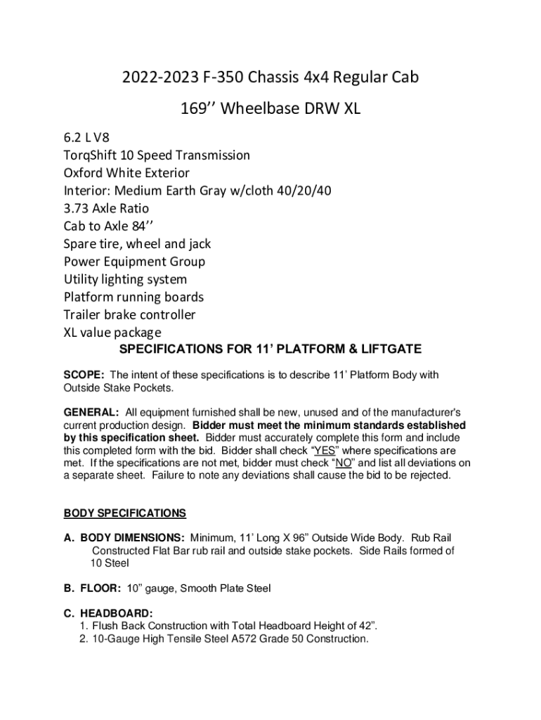 20222023 F350 Chassis 4×4 Regular Cab 169 Wheelbase DR XL 6.2 L V8 Downshift 10 Speed Transmission Oxford White Exterior Interior: Medium Earth Gray w/cloth 40/20/40 3.73 Axle Ratio Cab to Axle 84