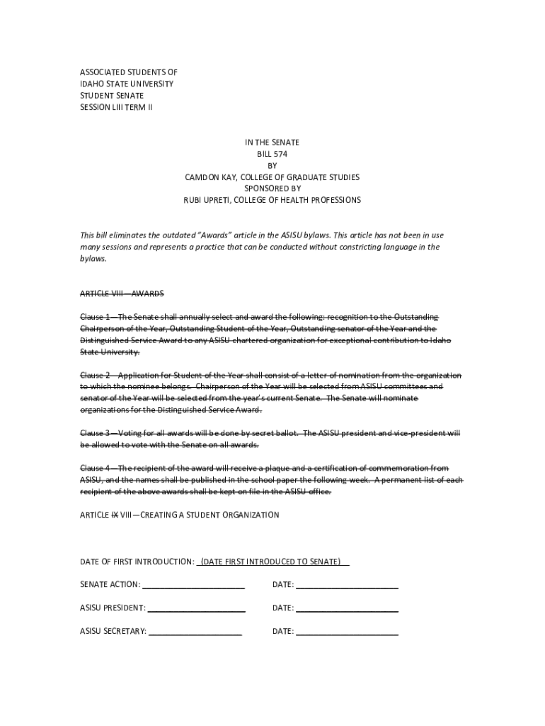Bill-574-Asisu-Awards-Pdf - Idaho State is not the form you're looking for?Search for another form here.