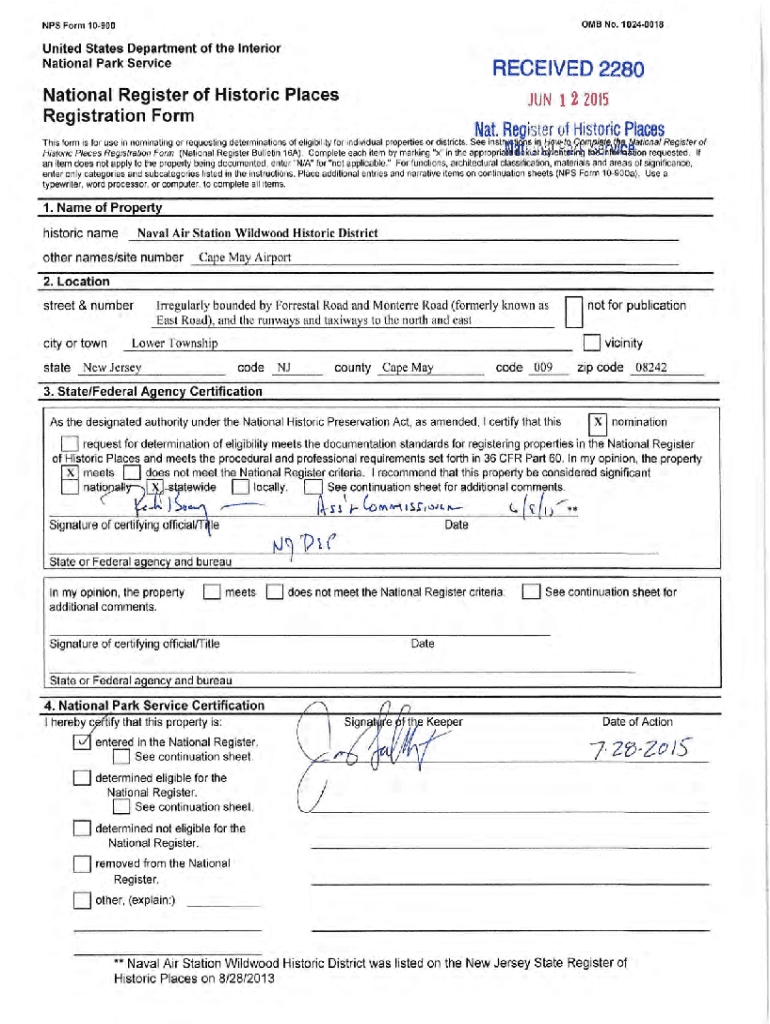 Get the free Naval Air Station Wildwood Historic District. RecordID (Reference Number)