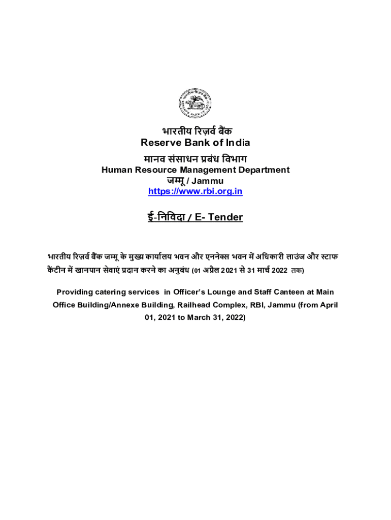 Reserve Bank of India Human Resource Management Department / Jammy https://www.rbi.org.in / E Tender.