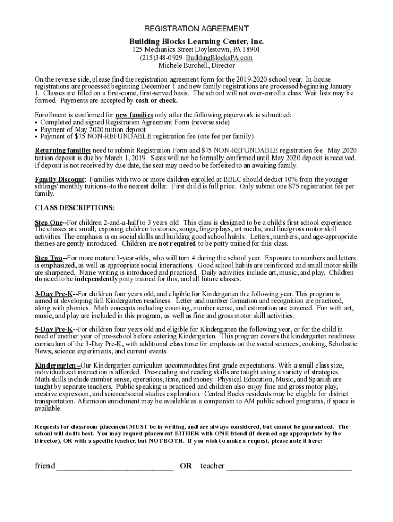 REGISTRATION AGREEMENTBuilding Blocks Learning Center, Inc.